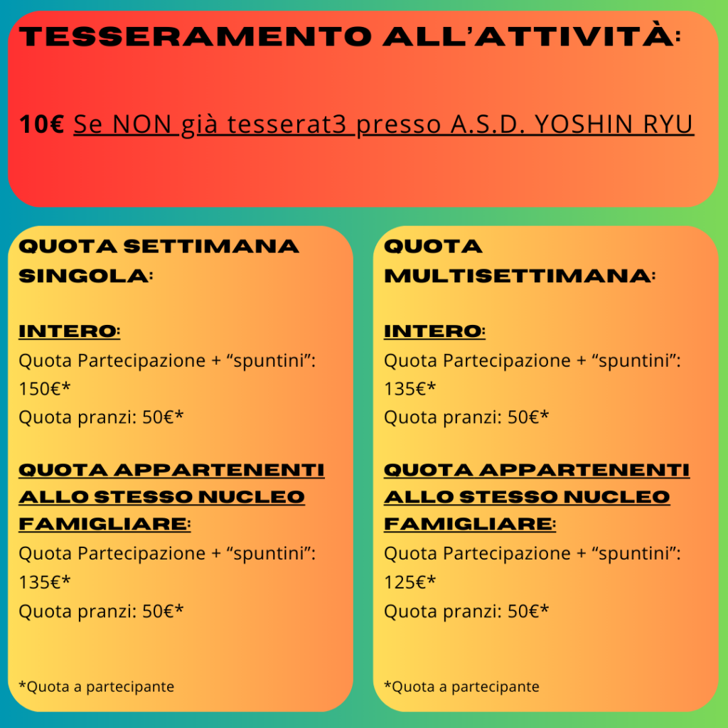 PROGRAMMA GIORNALIERO Yoshin Ryu NINJA CAMP: